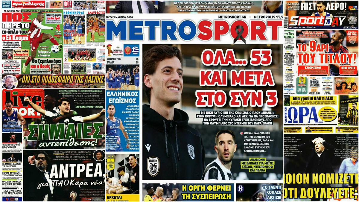 Κυριακή 7 Δεκεμβρίου | Διαβάστε τα σημερινά Αθλητικά Πρωτοσέλιδα των εφημερίδων