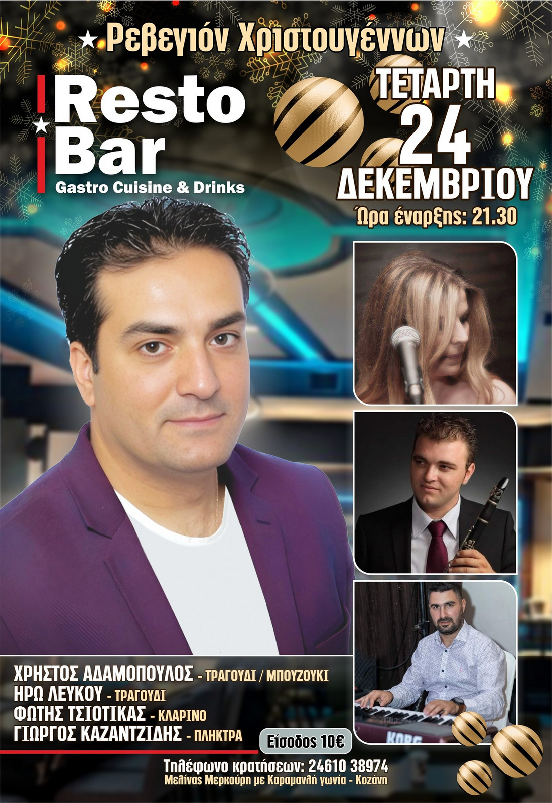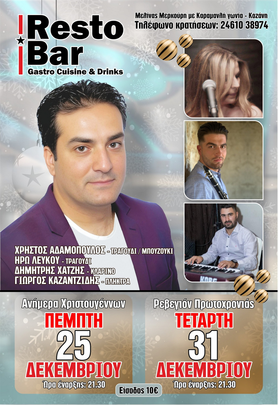 Παραμονή Χριστουγέννων, Χριστούγεννα και Ρεβεγιόν Πρωτοχρονιάς στο ανακαινισμένο "RestoBar" στην Κοζάνη!