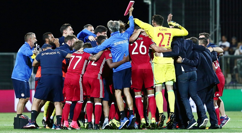 Ο Ολυμπιακός πανηγυρίζει την επιστροφή του στους ομίλους του Τσάμπιονς Λιγκ.