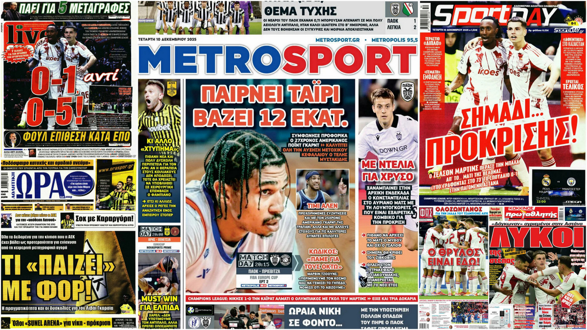 Τετάρτη 10 Δεκεμβρίου | Διαβάστε τα σημερινά Αθλητικά Πρωτοσέλιδα των εφημερίδων