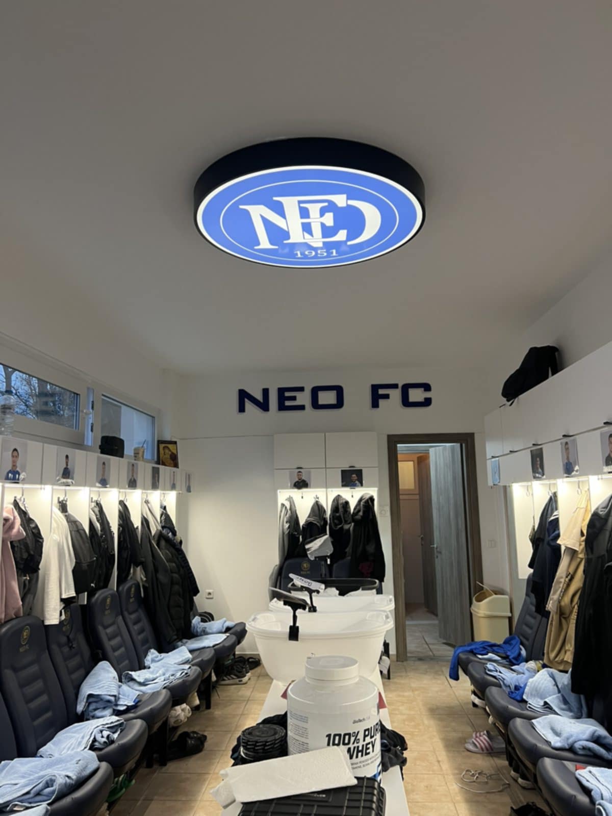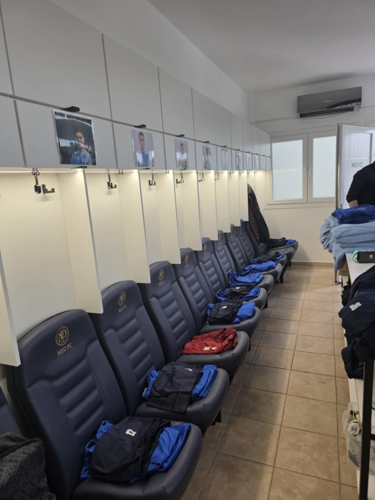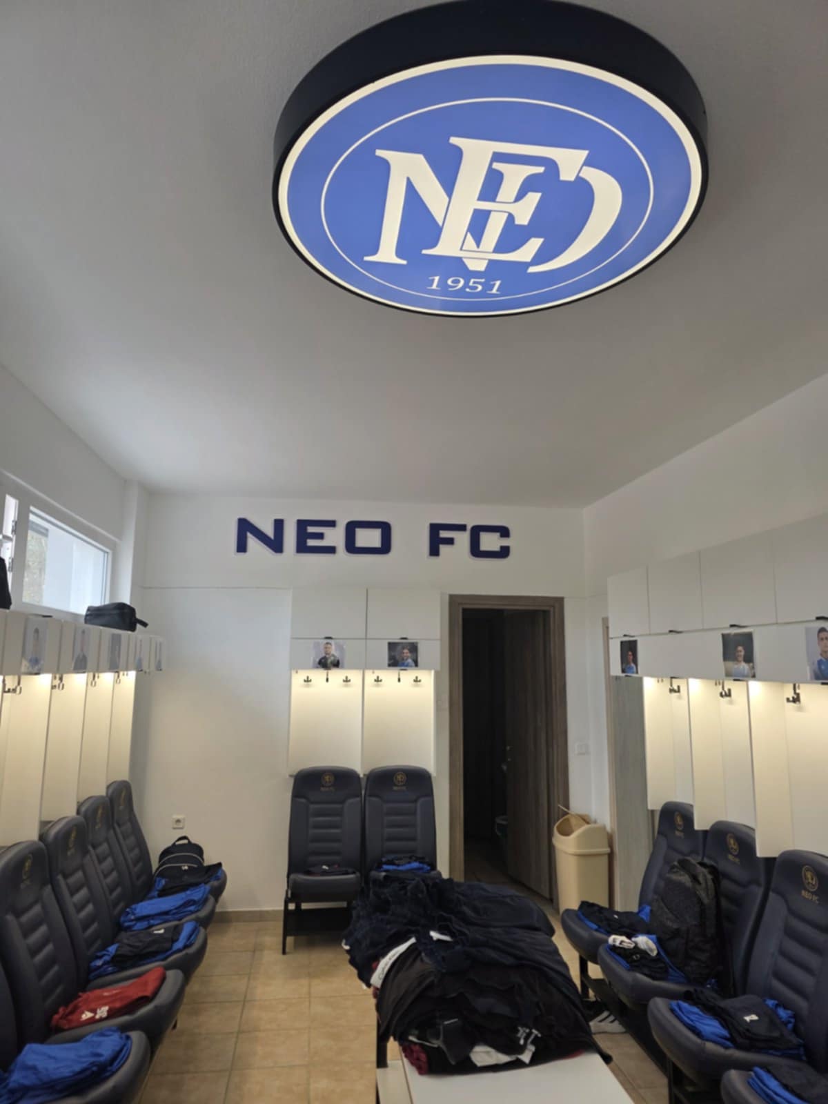 Aποδυτήρια όπου δεσπόζουν οι… πολυτελείς καρέκλες, οι φωτογραφίες των παικτών, το ανανεωμένο λογότυπο του συλλόγου και πολλά ακόμα που τραβούν την προσοχή και πραγματικά σπανίζουν για τέτοιο επίπεδο.