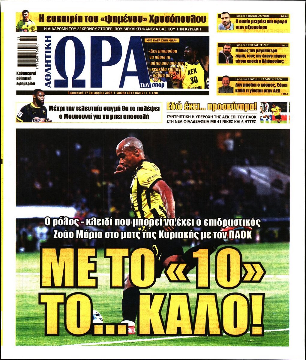Παρασκευή 17 Οκτωβρίου | Διαβάστε τα σημερινά Αθλητικά Πρωτοσέλιδα των εφημερίδων