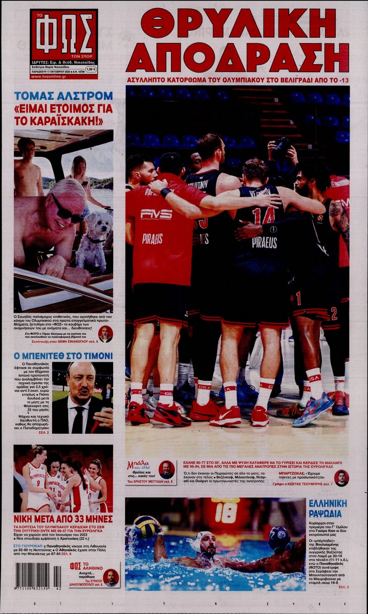 Παρασκευή 17 Οκτωβρίου | Διαβάστε τα σημερινά Αθλητικά Πρωτοσέλιδα των εφημερίδων.