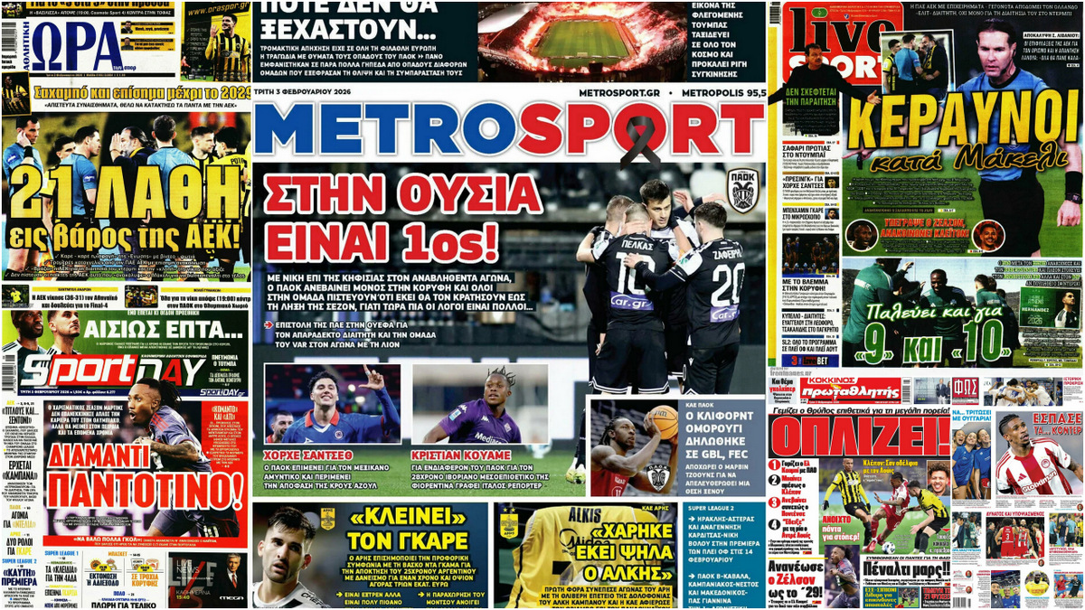 Τρίτη 3 Φεβρουαρίου | Διαβάστε τα σημερινά Αθλητικά Πρωτοσέλιδα των εφημερίδων