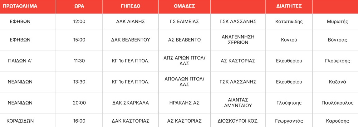 Αναλυτικά το πρόγραμμα και οι διαιτητές της Κυριακής: