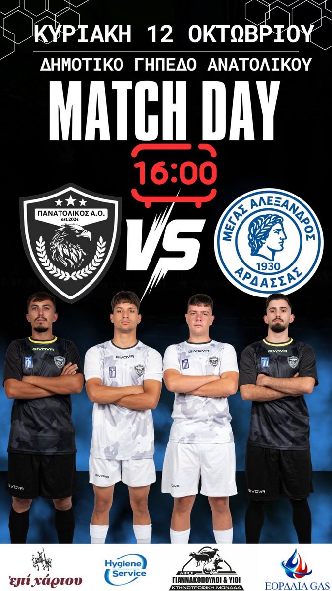 Αυτή την Κυριακή στις 16:00 Πανατολικος ΑΟ-Μέγας Αλέξανδρος Αρδασσας στο Δημοτικο Γήπεδο Ανατολικού!
