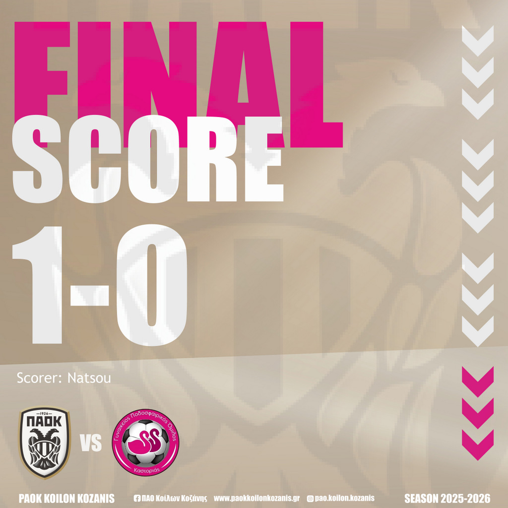 Η Γυναικεία Ομάδα του ΠΑΟΚ ΚΟΙΛΩΝ ΚΟΖΑΝΗΣ έκανε το καλύτερο ξεκίνημα στο πρωτάθλημα της Γ’ Εθνικής Γυναικών, παίρνοντας τη νίκη με 1-0 απέναντι στον Γυναικείο Ποδοσφαιρικό Όμιλο Καστοριάς, στο Λιάπειο Αθλητικό Κέντρο των Κοίλων.