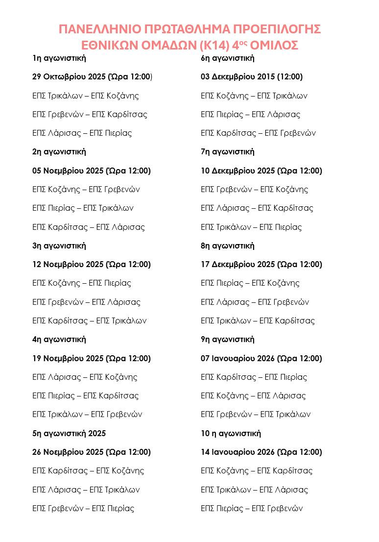 Πανελλήνιο Πρωτάθλημα Προεπιλογής: Στον 4ο Όμιλο οι Μικτές Ομάδες Κ14 και Κ16 της Ε.Π.Σ. Κοζάνης.