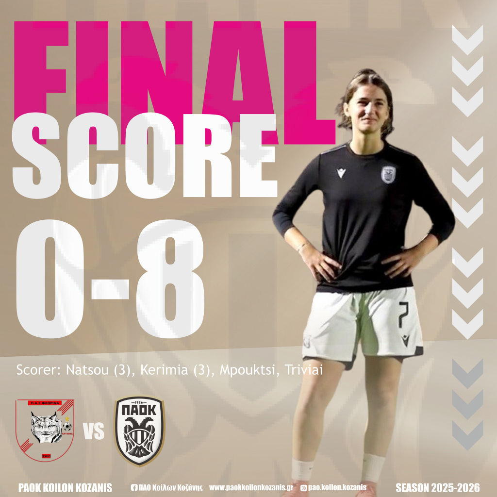 Για την 2η αγωνιστική, τα κορίτσια μας επικράτησαν εκτός έδρας του ΠΑΣ Φλώρινα με σκορ 0-8, πετυχαίνοντας τη δεύτερη συνεχόμενη νίκη τους σε ισάριθμα παιχνίδια και παραμένοντας στην κορυφή του βαθμολογικού πίνακα με 6 βαθμούς.
