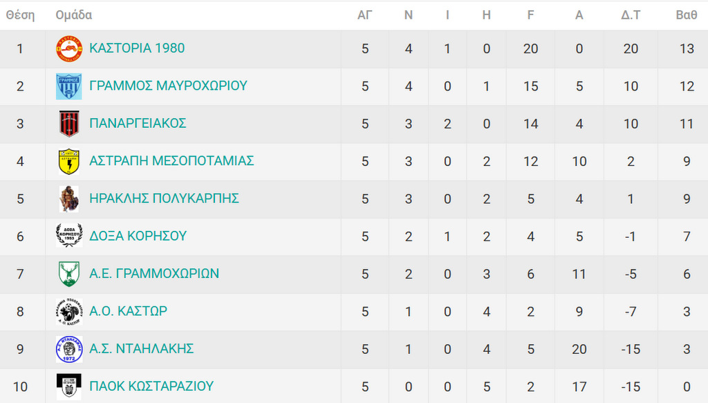 Α’ Τοπικό Ε.Π.Σ. Καστοριάς (5η Αγωνιστική)