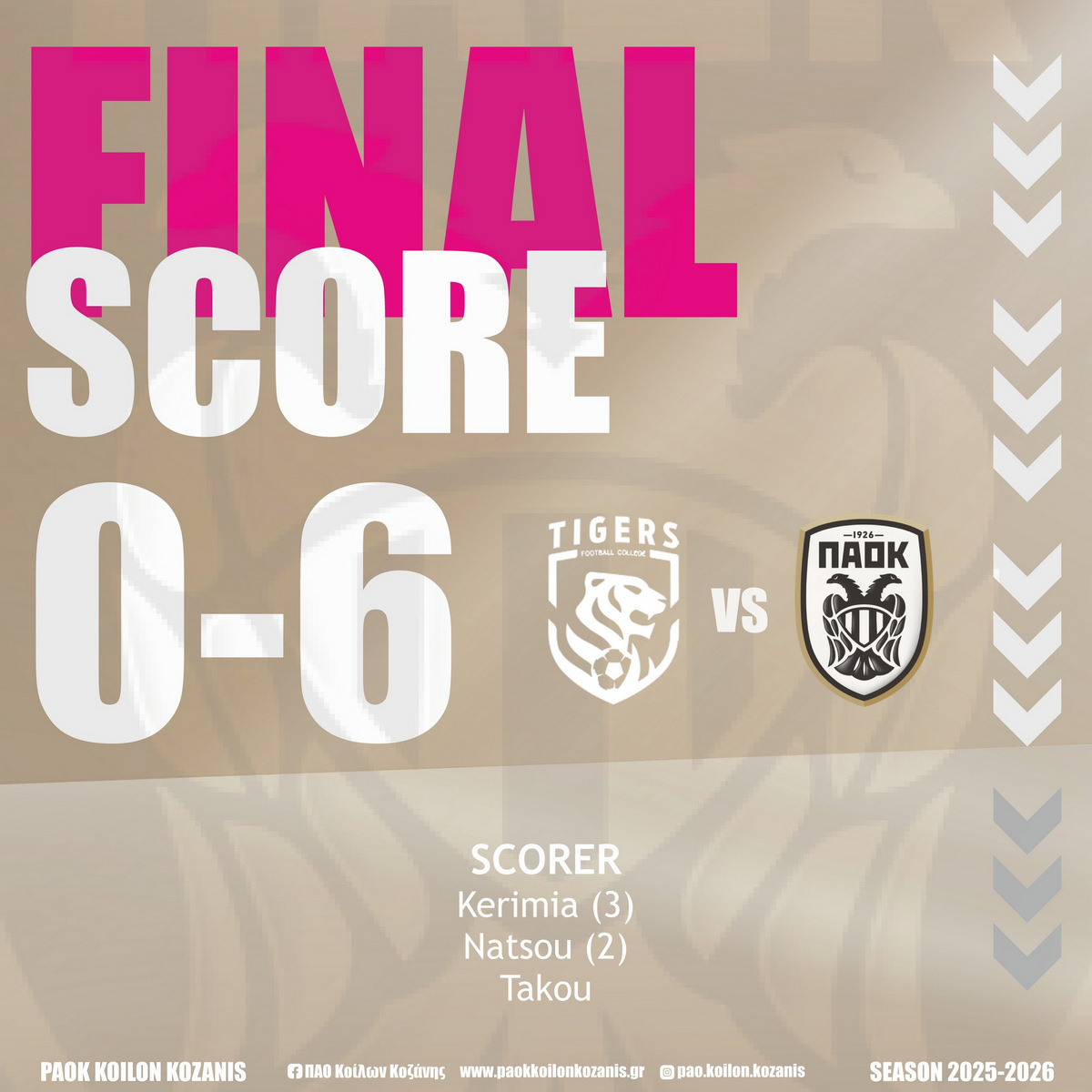 Τα γκολ για τον ΠΑΟΚ Κοίλων σημείωσαν οι Κεριμία (3), Νάτσου (2) και Τάκου, σε μία εμφάνιση γεμάτη πάθος, ποιότητα και αποτελεσματικότητα.