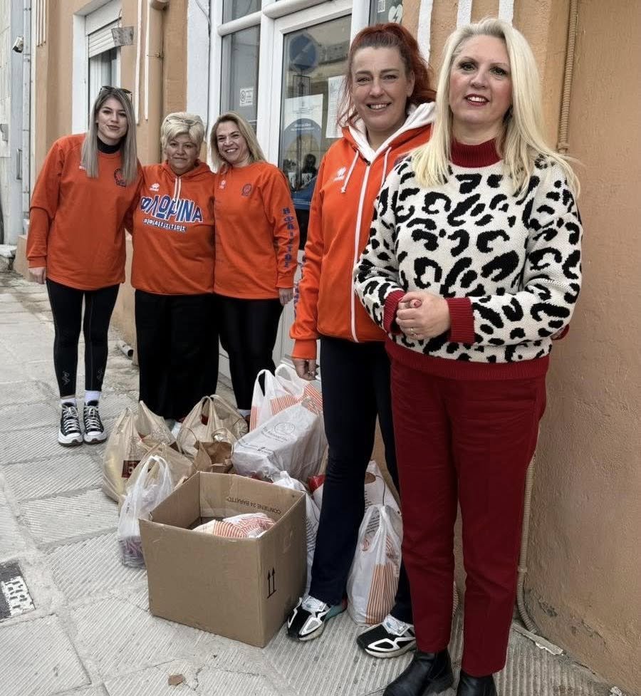 Τα τρόφιμα παραδόθηκαν από αντιπροσωπεία της ομάδας μας αποτελούμενη απο την προπονήτρια Σεχίδου Αφροδίτη, την αρχηγό των Γυναικών Κατερίνα Δημοπουλου και από τα μέλη της εθελοντικής μας ομάδας Σιώπη Εύη και Βάσιου Βέτα στην κυρία Μαρία Γαζέα, κοινωνική λειτουργό της Διεύθυνσης Κοινωνικής Προστασίας.