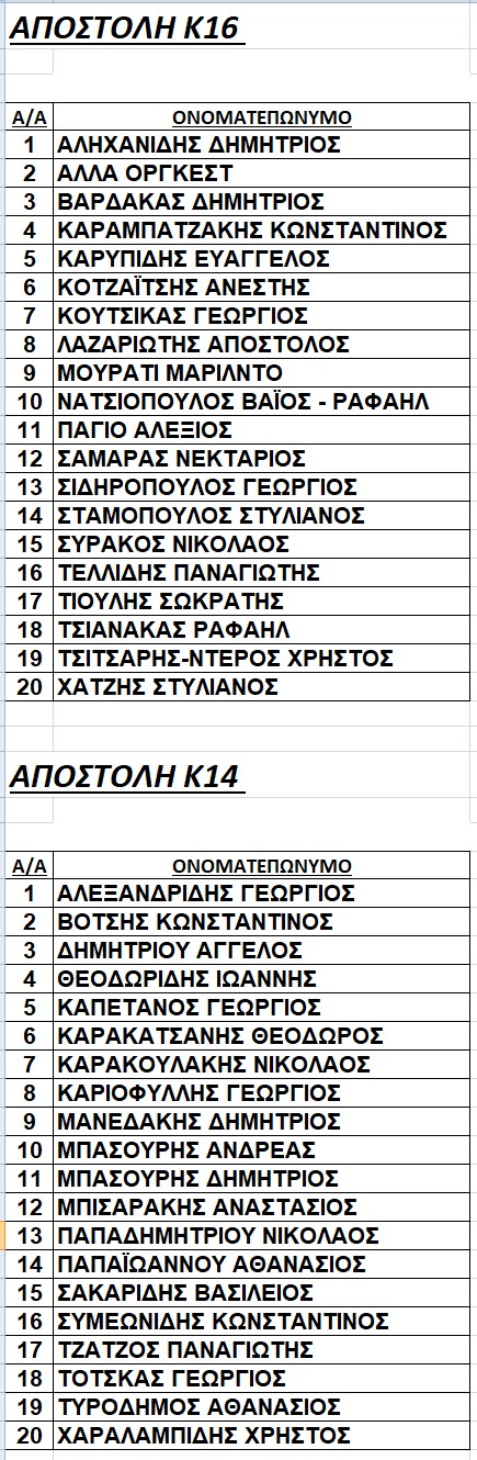 Οι αποστολές των ομάδων Κ14 & Κ16 της Ε.Π.Σ. Κοζάνης για τον αγώνα στις 17-12-2025 με την Ε.Π.Σ. Πιερίας για το Πρωτάθλημα Προεπιλογής Εθνικών Ομάδων 2025-2026.