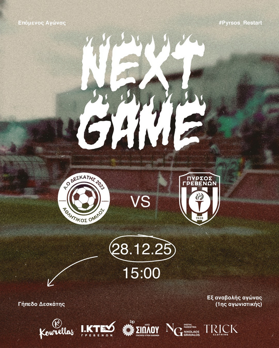 Στην Δεσκάτη θα ταξιδέψει ο Πυρσός για τον εξ αναβολής αγώνα της πρώτης αγωνιστικής και να ολοκληρωθεί ο πρώτος γύρος του πρωταθλήματος.