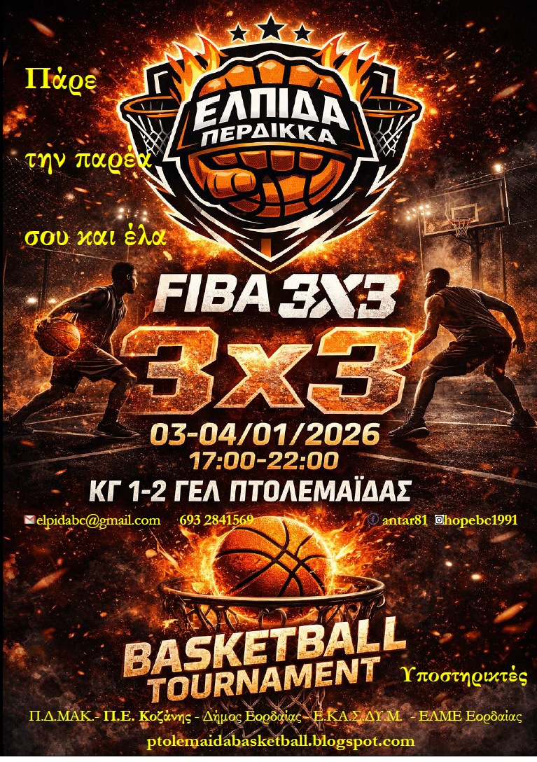 Μετά από 3 άκρως πετυχημένα 3on3 συνεχίζουμε και το διήμερο 03-04/01/2026 με ακόμα ένα τουρνουά. Το 2026 new year winter 3on3 στην Πτολεμαΐδα και φέτος είναι FIBA endorsed 3x3 competition, που σημαίνει ότι παίρνετε πόντους στην παγκόσμια κατάταξη της FIBA3on3.