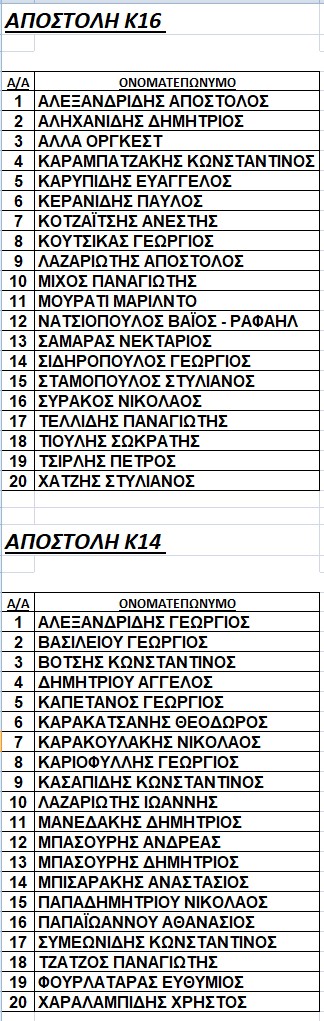 Οι αποστολές των ομάδων Κ14 & Κ16 της Ε.Π.Σ. Κοζάνης για τον αγώνα στις 07-01-2026 με την Ε.Π.Σ. Λάρισας για το Πρωτάθλημα Προεπιλογής Εθνικών Ομάδων 2025-2026.