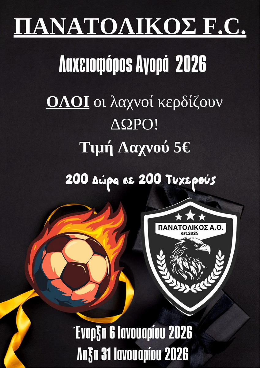 Από σήμερα 6/1/2026 και μέχρι 31/1/2026 θα είναι διαθέσιμοι οι λαχνοί μας!