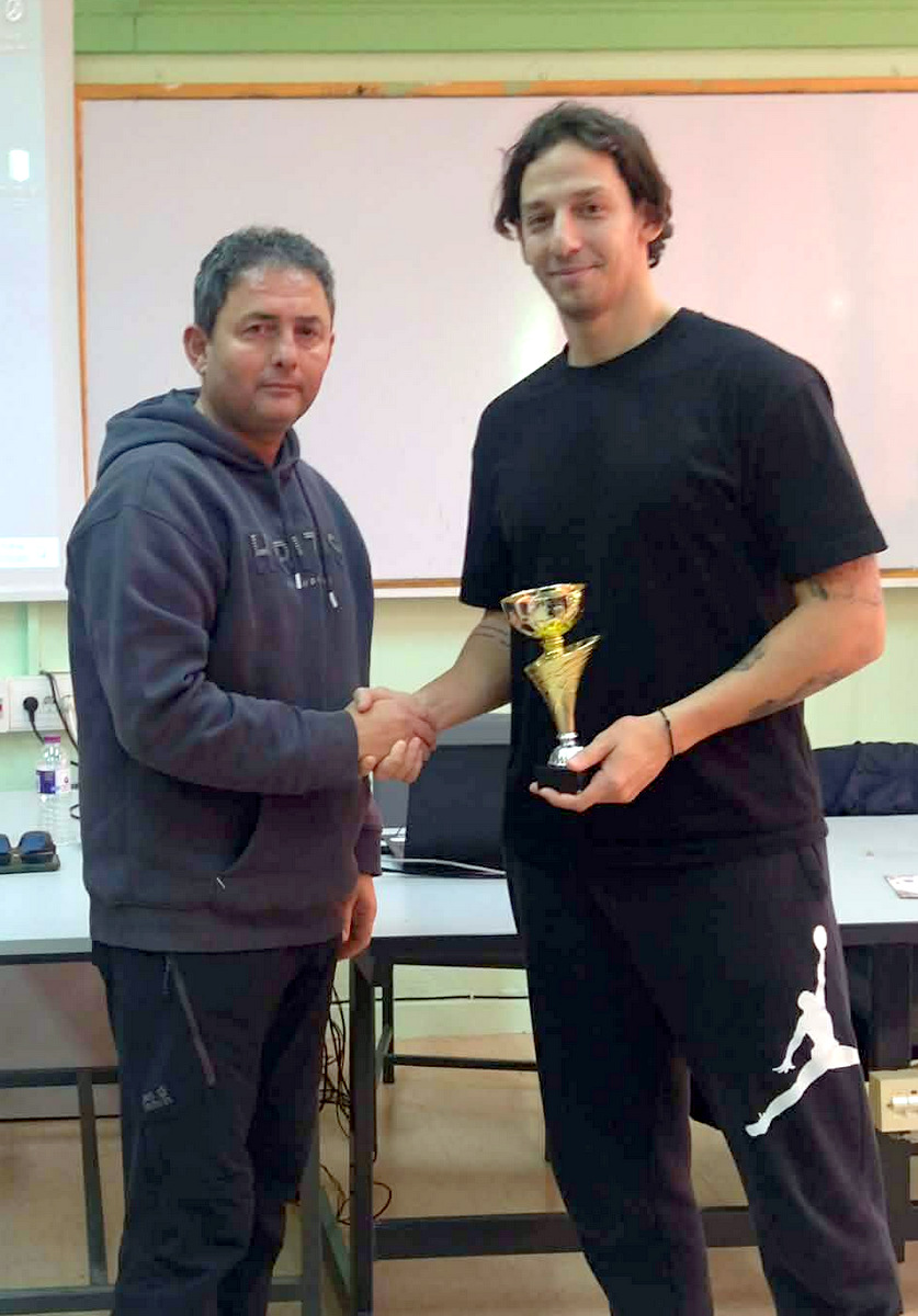 Στη συνέχεια του απονεμήθηκε από τον διευθυντή του σχολείου μας, κ. Δουλγερίδη, κύπελλο για την προσφορά του στον αθλητισμό της Ελλάδας!!!