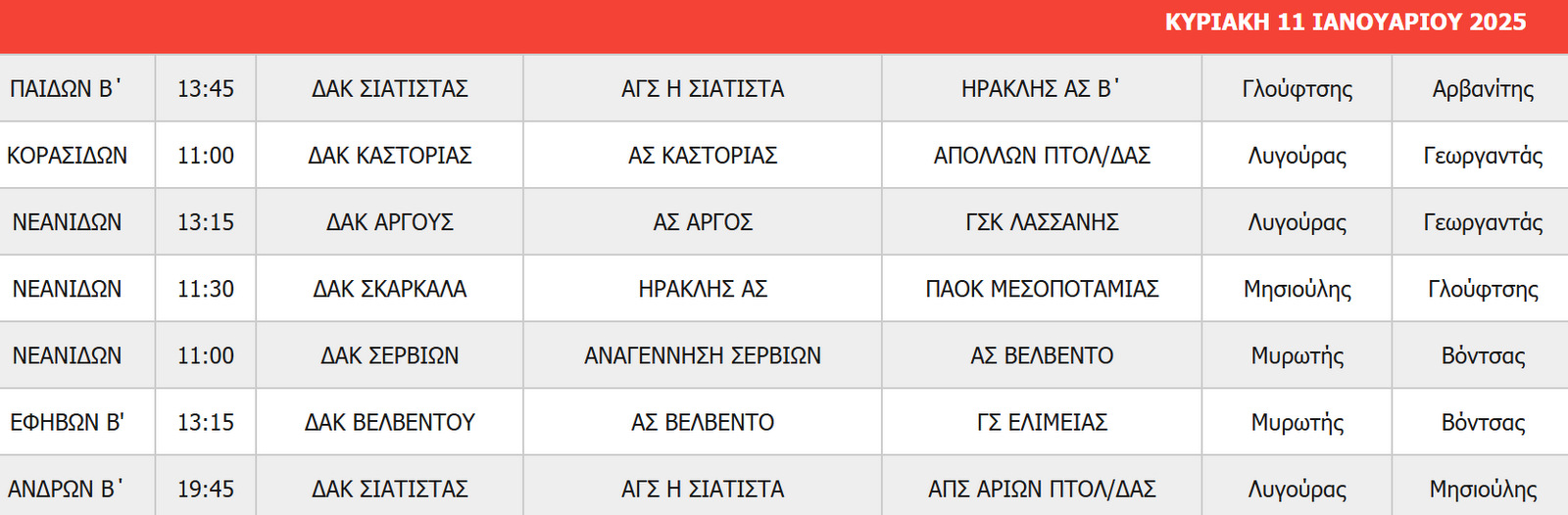 Αναλυτικά το σημερινό πρόγραμμα της Κυριακής: