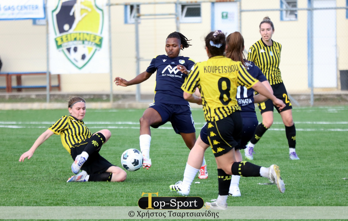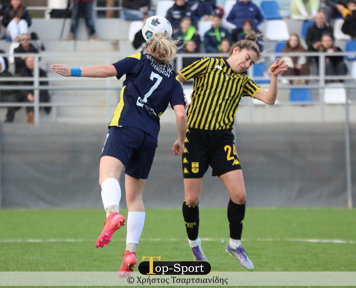 Στο πρώτο μέρος, οι γηπεδούχες αν και έχασαν ευκαιρίες για γκολ, δεν μπόρεσαν να πάρουν το προβάδισμα βρίσκοντας την αντίπαλη τερματοφύλακα Χριστιάννα Βήκα σε πολύ καλή ημέρα, με το πρώτο ημίχρονο να ολοκληρώνεται χωρίς σκορ (0-0).