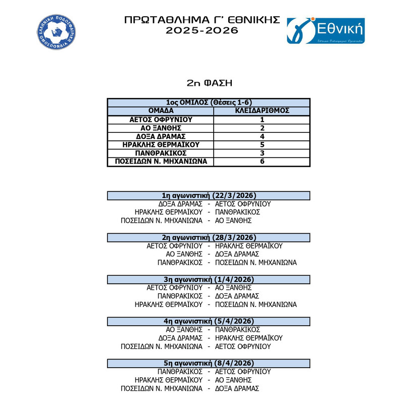 Γ’ Εθνική: Αυτό είναι το αναλυτικό πρόγραμμα των Play Off & Play Out σε όλους τους Ομίλους.