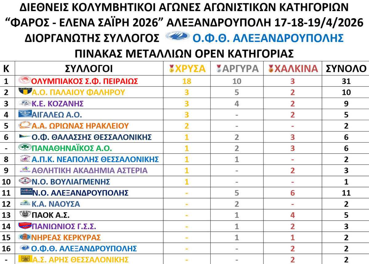 Κολυμβητική Ένωση Κοζάνης: Με 13 μετάλλια επέστρεψαν οι αθλητές μας από το Διεθνές Μίτινγκ «Φάρος - Έλενα Σαΐρη» στην Αλεξανδρούπολη