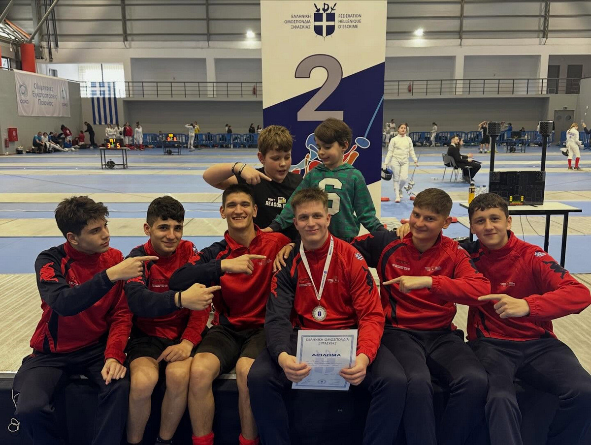 Τζωρτζίνα Καραστεργίου, Νικολέτα Στεργιούλα, Μαρίλια Κέκελη και Κατερίνα Νοτίδου κατέκτησαν το Χρυσό Μετάλλιο στο Ομαδικό κερδίζοντας τον Αρίστων Παιανίας στον Τελικό 38-32. Νωρίτερα στο Τ8 κέρδισαν τον Ξιφομάχο – Καλαμαριά 45-15 και στον ημιτελικό τη Λέσχη Οπλομαχίας Βάρης 45-28.