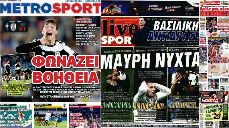 - Πέμπτη 2 Οκτωβρίου | Διαβάστε τα σημερινά Αθλητικά Πρωτοσέλιδα των εφημερίδων