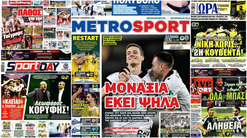Κυριακή 9 Νοεμβρίου | Διαβάστε τα σημερινά Αθλητικά Πρωτοσέλιδα των εφημερίδων