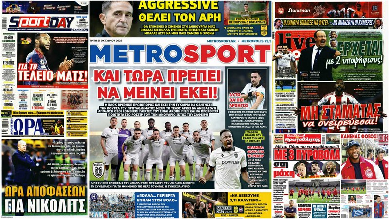 Τρίτη 21 Οκτωβρίου | Διαβάστε τα σημερινά Αθλητικά Πρωτοσέλιδα των εφημερίδων
